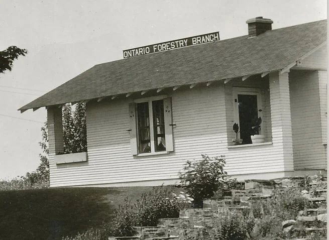 District Forester Peter McEwen acquired $600 to build a 16X30 ft frame bungalow for the towerman- he designed the strcture himself ensuring that the building harmonized with the grounds
